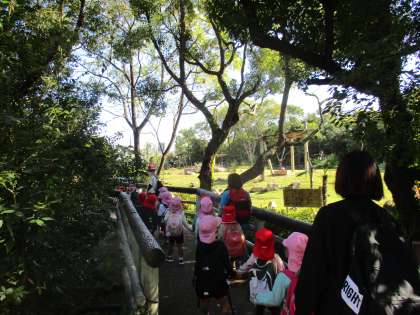 事前に、幼稚園内を遠足ごっこで歩くと、