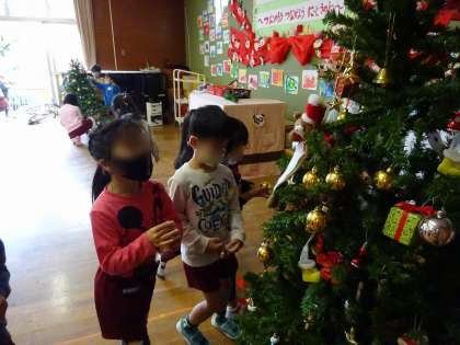 大きなツリーを見て、大喜びの子どもたち。