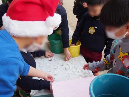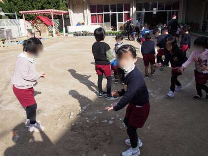 きく組(5歳児)が呼びかけると、足跡のようなものがあります。