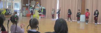 他のクラスと、楽器遊びや合奏、歌を見合いました。