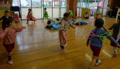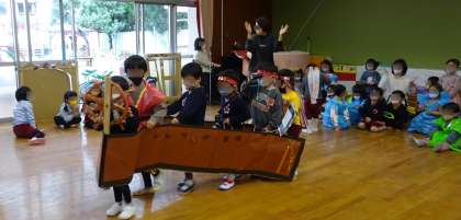 みんなで劇遊びをしたよ(その1) 公開日 2023/02/16 更新日 2023/02/16 幼稚園日記 きく組(5歳児)が、 「(劇遊びで使った)ピーターパンの服、使っていいよ!」 と、さくら組(4歳児)とうめ組(3歳児)を誘い、 各クラスの劇遊びを全クラスで楽しみました。 さくら組とうめ組は、 憧れのピーターパンやウェンディなどの衣装を きく組に着せてもらい、大喜び! きく組が優しくセリフも教えてくれ、 なりきって遊ぶことを楽しみました。 いいね(0)