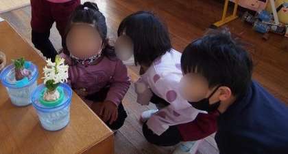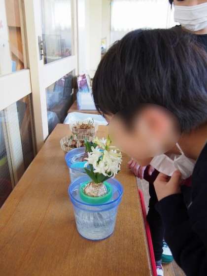 保育室で育てていた、ヒヤシンスの花が咲きました。