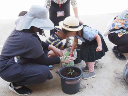 と野菜の生長を楽しみにしながら、苗植えをお家の人と一緒に楽しんでいました。