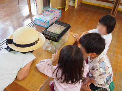 さなぎになったよ 公開日 2023/05/24 更新日 2023/05/24 幼稚園日記 アゲハの幼虫を大切に育てている子どもたち。 登園してくると、「アオムシさなぎになってる」「ほんまや」「もうすぐ、ちょうちょうになるね」とさなぎに変身したことを、大喜び! ちょうちょうになる日が楽しみですね。 いいね(0)