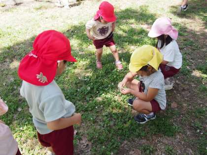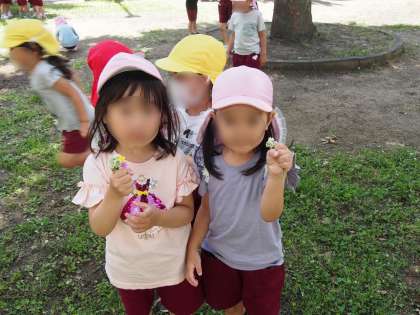 遊具で遊んだり、鬼ごっこをしたり、お花摘みをしたりして、楽しく遊びました。