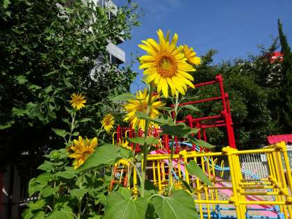 夏休みの園庭 公開日 2023/08/09 更新日 2023/08/09 幼稚園日記 子どもたちが植えて育ててきたヒマワリとアサガオが、園庭で元気に咲いています。(ヒマワリは、地域の方からもいただきました) 夏ですね!みなさま、いかがお過ごしですか? さて、クイズです! どちらがヒマワリで、どちらがアサガオでしょう。 いいね(0)