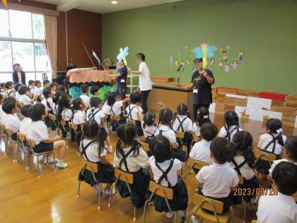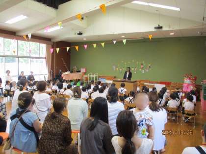 2学期始業式 公開日 2023/08/28 更新日 2023/08/28 幼稚園日記 今日から2学期が始まりました。 始業式では園長先生のお話をしっかり聞くことができました。 かわいいとんぼさんがみんなに会いにきてくれ、久しぶりの登園で少し緊張していた子どもも笑顔になっていました! 2学期も楽しいことをたくさんして元気に過ごしましょうね! いいね(0)