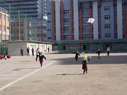 浪速小学校の校庭を借りて、たこあげをさせてもらいました。