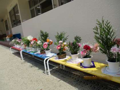 きく組によるアレンジメントフラワー。一人ひとりの個性が光っています。