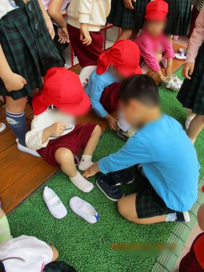 5歳児も、自分たちが入園した時に優しくお世話してくれたお兄さんお姉さんを思い出したようです。異年齢の関わりを大切にしていきたいですね。