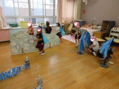 きく組(5歳児)は、自分たちが楽しんできた遊びを年下のクラスの友達に教えてあげたり優しくリードしてくれたり、頼もしい姿がたくさん見られました。