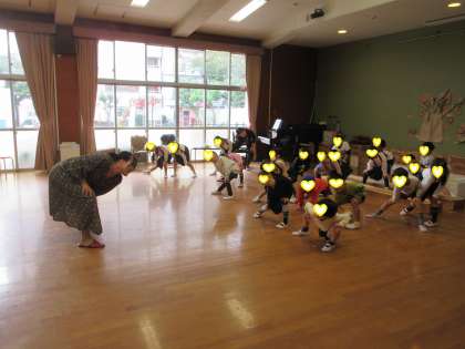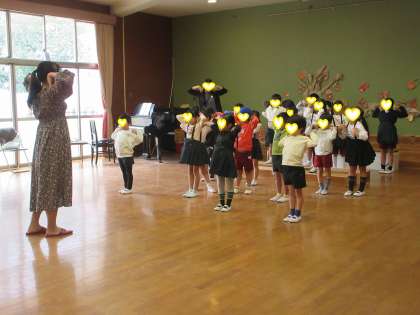 今日は、大阪市立日本橋中学校から音楽の先生がお越しくださり、きく組(5歳児)に歌唱指導をしていただきました。
