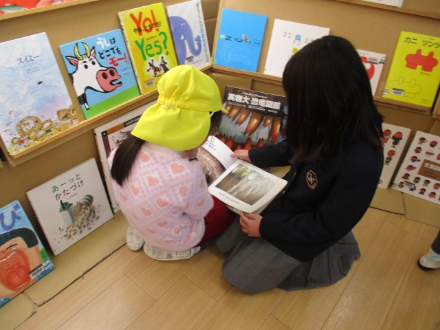 絵本あれこれ研究家「加藤啓子さん」をお招きし、絵の本のひろばが日本橋小中一貫校で始まりました。8年生(中2)5年生、5歳児との関わりでは、初めは緊張した表情でしたが、お兄さんお姉さんに優しい言葉をかけてもらうことで緊張がほぐれてきました。自分の見たい絵本を手に取り、お兄さんお姉さんに身をゆだね、心をゆるしながら、絵本をよんでもらっていました。絵本やその空間というものを通して、人と関わることの楽しさやぬくもりを感じる時間となりました。また一緒に遊んでね。