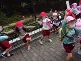 うめ組(3歳児)は、 「ダンゴムシ幼稚園の遠足」で遊びました。 フープを使って...