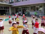 さくら組(4歳児)は、「さくら組にんじゃ」で遊びました。 忍者棒を頭の上に乗せ...