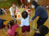 みんなでつくったケーキの周りで、 おうちの人と一緒に、ふれあいダンスをし、 日東...
