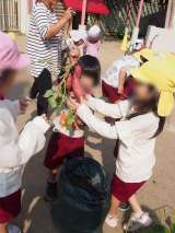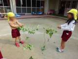 サツマイモを掘った後は、葉っぱや長いつるを使って遊びました。 友達とつるを引っ張...