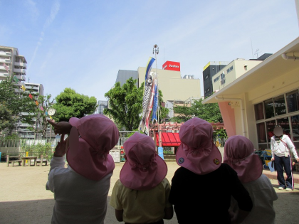 とってもいい天気の中、こどもの日の集いをしました。こいのぼりも気持ちよく泳いでい...