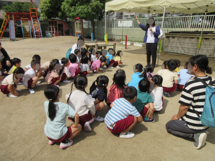 今年度初めての火災発生時の避難訓練をしました。非常ベルの音を聞き、先生の話をよく...