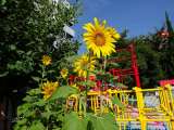 子どもたちが植えて育ててきたヒマワリとアサガオが、園庭で元気に咲いています。(...