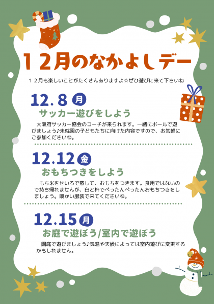 12月も楽しい行事を予定しています♪♪ 寒くなってきましたが、ぜひ遊びに来てくだ...