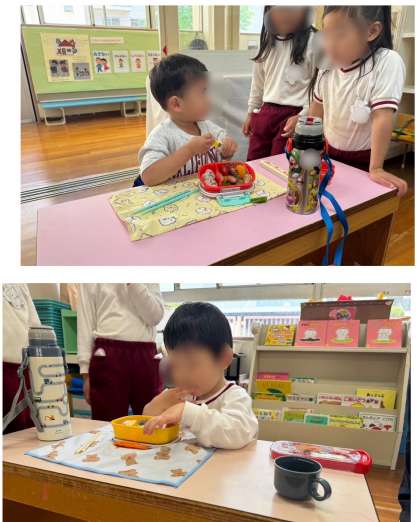 ゆり組が、初めてのお弁当を心配して見に来てくれて、お手伝いをしてくれました。
