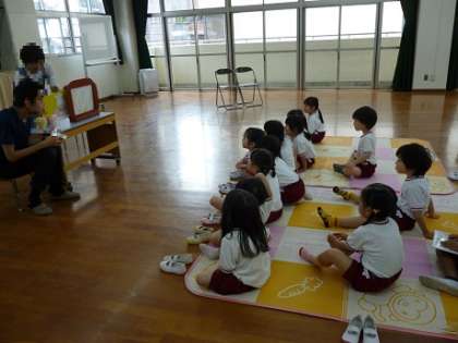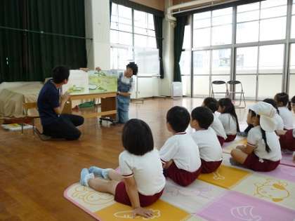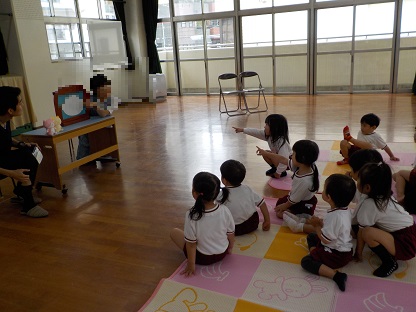 年齢に応じて、大きな絵本や紙芝居などを読み聞かせていただきました。