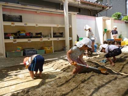 立葉幼稚園では、毎日、園庭で泥遊びをしています。