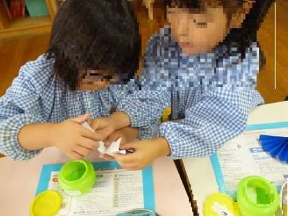 1枚の折り紙から、いろいろな美しい飾りができあがると、子どもたちから歓声があがります
