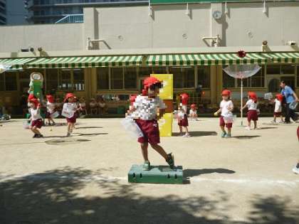 運動会でのばら組さんの玉入れは、