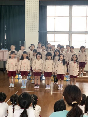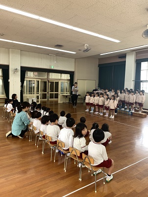 ゆり組さんが披露する歌を幼稚園の子どもたちみんなで聴かせてもらいました