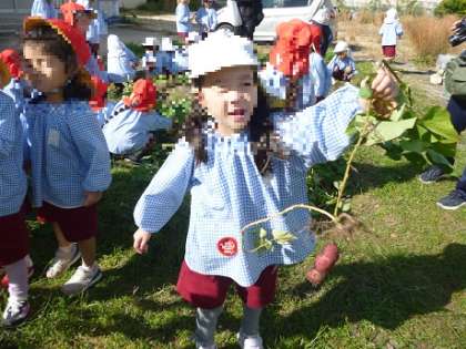 今年は酷暑のため、不作な野菜が多いと聞いていたので、幼稚園のお芋もできているか心配していましたが・・・