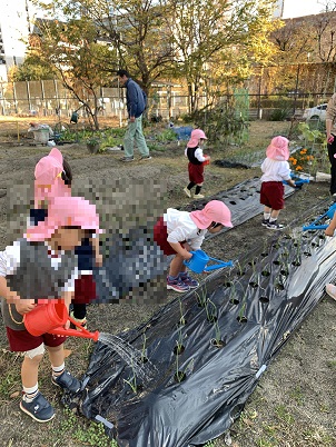 地域でお借りしている畑に、もも組さんが水やりに行きました