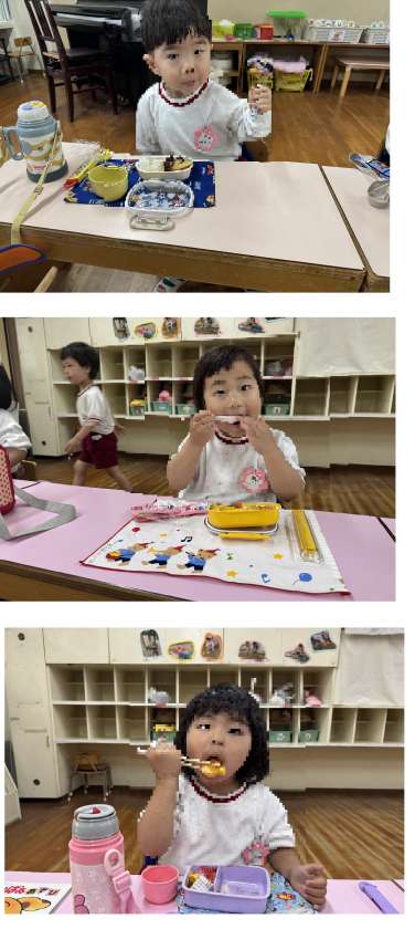 初めてのお弁当で、ドキドキしたり戸惑ったりする様子もありましたが、そんな様子も受け止めながら、楽しくお弁当の時間を過ごせたらと思います。