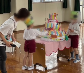 今日は、4月の誕生会でした。人数が多く、分散しての会になりましたが、誕生児の素敵な姿に、お祝いするお友達からの拍手のプレゼントが送られました。ケーキのお祝い、お家の方からのお祝いメッセージにも笑顔が溢れていました。