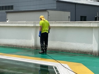 2年続けて中止となったプールが、今年ようやく始まります。そのため、プールサイドを懸命に掃除してくれています。