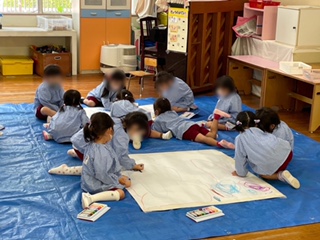 お友達と一緒に描けるくらいの大きな紙に大喜びでした。