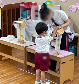 もも組(3歳)が体重測定の後、保健指導を受けました。トイレにも慣れてきましたが、うまくトイレットペーパーを巻き取れない実態があり、1人ずつ、やり方を知らせてやってみました。うまくできて褒められて、笑顔いっぱいの子どもたちでした。さあ、トイレで、チャレンジ!