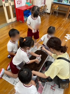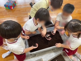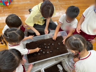 大喜びの反面、飼育ケースにぎゅうぎゅう詰めの幼虫を見て、「中でケンカしちゃうかも」と心配になった子どもたち、、。