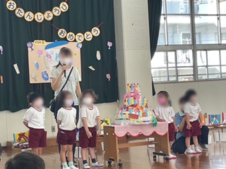 8月の誕生会 公開日 2022/09/07 更新日 2022/09/07 お知らせ 誕生会前に、誕生児が元気よく園長室にやって来ました。 特別にふかふかのソファに座らせてもらい、誕生バッチをもらったり、1冊しかない自分だけの誕生本を見たりしました。なんとも言えない、嬉しさが溢れた表情でした。 その後に感染対策を講じながら、みんなでお祝いをしましたよ。 いいね(0)