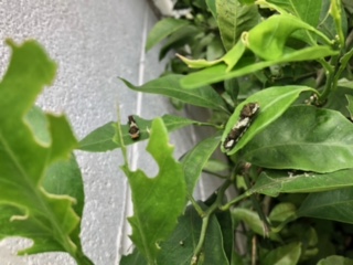 ミカンの木で、またたくさんのアオムシが育っています。春の経験がある子どもたちは、すぐにアオムシを見つけて、園庭に出る度に様子を見たり、触ろうとしてみたり…。