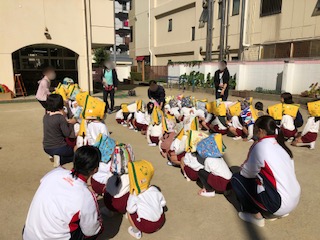 避難訓練(地震) 公開日 2022/11/02 更新日 2022/11/02 お知らせ 地震が起きた想定で避難訓練を実施しました。 頭巾を被って頭を守って園庭に避難しました。 「お・は・し・も」の約束、「おさない」「はしらない」「しゃべらない」「もどらない」を確認したり、避難訓練は自分の命を守る大切な練習だということを、避難訓練後にクラスごとで振り返ったりしました。 いつ起こるか分からない災害に備えて、子どもたちの様子に合わせて指導しています。 いいね(0)