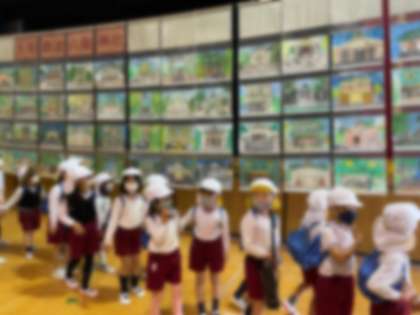 今日は、ゆり組が塩草立葉小学校の作品展を見に行きました。少し遠かったけれど、しっかり歩いて行き来できました。小学校で迎えてくださった先生に案内していただき、体育館へ。1年生から6年生まで、様々な作品を見て、驚きと感嘆の声が聞かれました。
