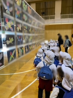 たくさんの作品を見ている中で、去年のゆり組の名前を1年生の作品から見つけて「すごいなあ」と感心していました。帰りに教頭先生も見送りに来てくださり、元気な声で挨拶して帰りました。次は、みんなが一年生だね。