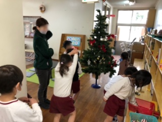 ?好きなものを選んで、ツリーに飾り付けをしました。