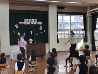 始業式と鏡開き 公開日 2023/01/12 更新日 2023/01/12 お知らせ あけましておめでとうございます。本年もよろしくお願いいたします。 3学期の始業式をし、園長先生からは鏡餅の由来の話を聞きました。そして先生たちから、まりつきや羽根つきなどの、伝統的なお正月の遊びを知らせました。 始業式のあとは、鏡開きをしました。今年も良い1年になるといいね。 いいね(0)