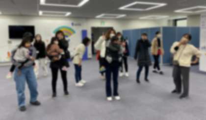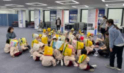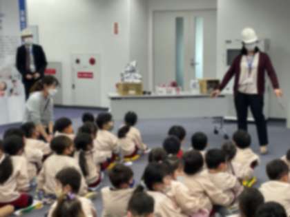 地震による津波発生を想定した避難訓練をしました。近くにあるNITTAビル10階まで、歩いて避難しました。防災頭巾をかぶり、3歳も最後までしっかりのぼりきりました。10階では、NITTAビルの方から、とにかく、5階まで避難したら安心であること、非常食について、お話を聞かせていただき、安心して避難してくださいとおっしゃっていただきました。