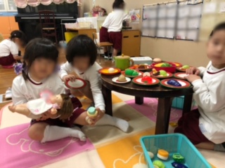 保育参観 もも組 公開日 2023/04/19 更新日 2023/04/19 お知らせ 今日はPTA総会、保育参観でした。 生憎の雨だったので、保育室で遊ぶ様子を見てもらいました。 ままごとでごちそうをつくったり、赤ちゃんの人形の世話をしてごっこ遊びをしたり、絵をかいたり、木製の電車で遊んだりしました。 園庭で遊ぶのも楽しいけど、保育室で遊ぶのも楽しかったね! いいね(0)