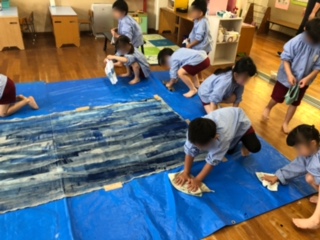 遊んだ後は手を洗って、雑巾で床を拭いたり、ローラーなど使ったものも洗いました。さすがゆり組!