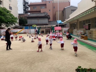みんなで遊んだよ! 公開日 2023/04/25 更新日 2023/04/25 お知らせ 今までは園庭で遊んで片付けた後、そのまま体操をしていましたが、今回は各クラスの靴箱前に座ってから、クラスごとに音楽に合わせて園庭を歩いたり、ウサギになってジャンプしたりしました。 ゆり組が歩いている時は、ばら組、もも組は手拍子で応援をしました。 もも組は初めてだったけど、ゆり組やばら組の姿を見て、先生や友達と一緒にしました。とっても楽しかったね! いいね(0)